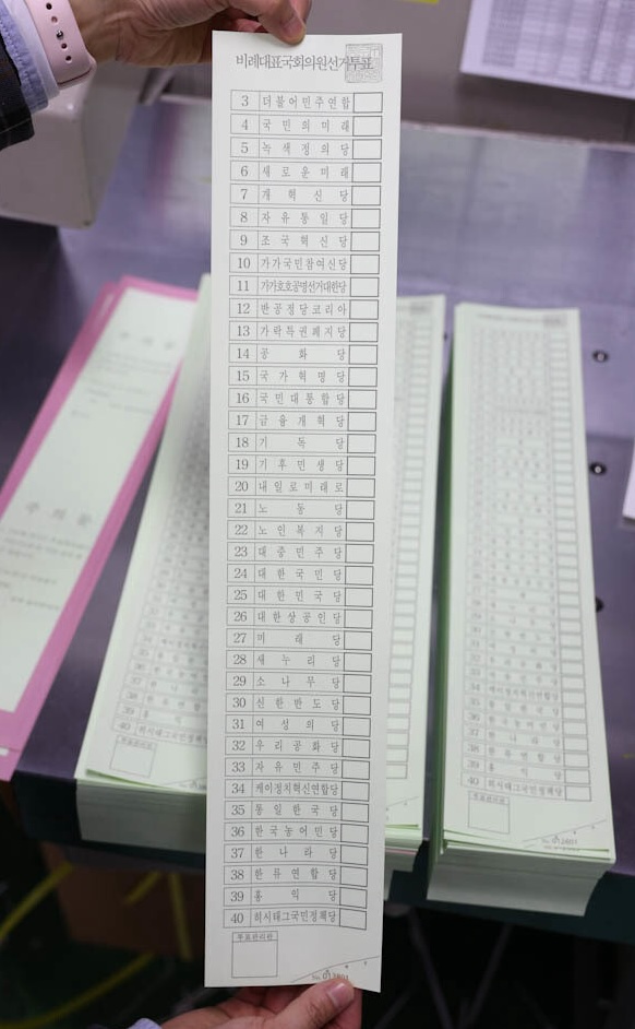 이번 선거의 특이한 점은 비례대표 투표용지입니다.